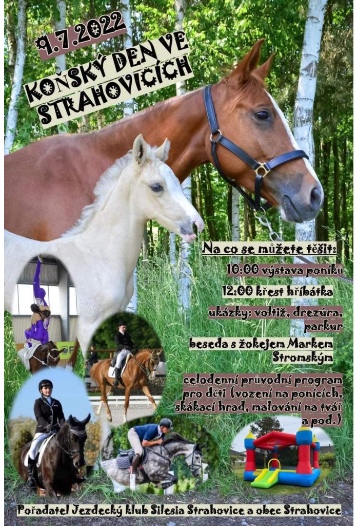 Jezdecký klub Silesia Strahovice a obec Strahovice Vás zvou na Koňský den ve Strahovicích