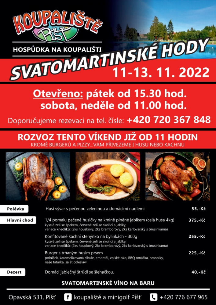 Hospůdka na koupališti v Píšti Vás zve na Svatomartinské hody