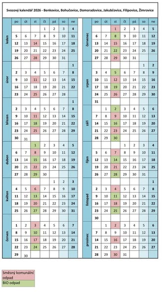 V Benkovicích, Bohučovicích, Domoradovicích, Jakubčovicích, Filipovicích a Žimrovicích proběhne svoz každou sudou středu.
