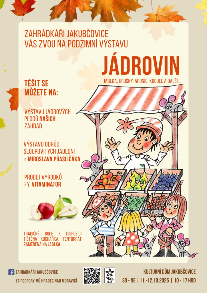 Výstava jakubčovických zahrádkářů na téma jablka, hrušky, a další jádroviny. Inspirace pro všechny zahrádkáře.