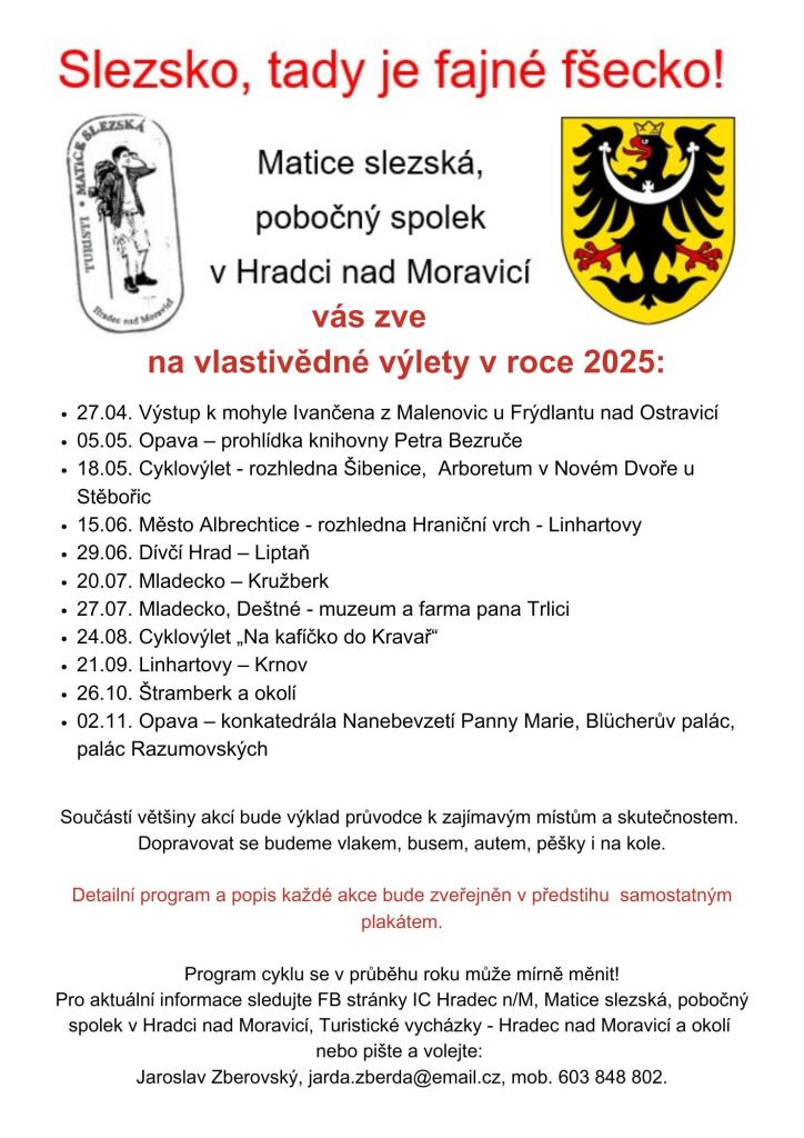 Turistické výlety do blízkého i dalekého okolí se členy Matice slezské. Návštěva konkatedrály Nanebevzetí Panny Marie, Blücherova paláce a paláce Razumovských.