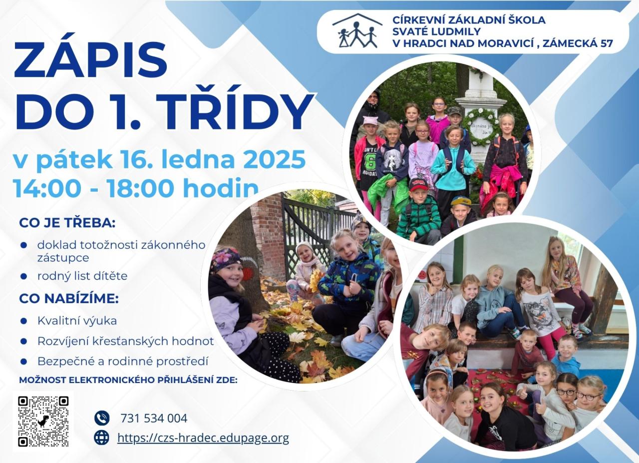 Pro zápis do 1. třídy si vezměte s sebou doklad totožnosti zákonného zástupce a rodný list dítěte. Pro více informací volejte na tel. číslo 731 534 004.