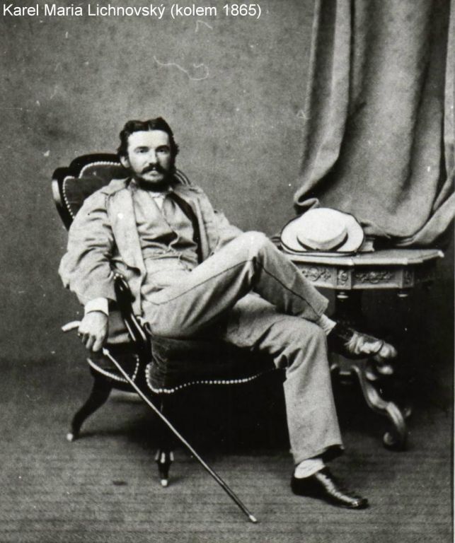 Kníže Karel Maria Lichnovský převzal hradecké panství po svém starším bratru Robertovi v roce 1857. Věnoval se péči o tři a půl tisíce hektarů lesů, stavěl hájenky, myslivny a lesní cesty, byl nadšeným nimrodem. Na začátku 60. let 19. století se pustil do přestavby hradeckého zámku (nynější Bílý zámek), navíc v roce 1874 zahájil výstavbu impozantních cihlových hospodářských budov (nynější Červený zámek) podle severoněmecké architektury. Dvěma konírnami, kočárovnou, třípodlažní budovou, strážní Hodinovou věží, vstupní branou s vytahovací mříží, hradební zdí a taktéž Bílou věží se vzhled zámeckého areálu zásadně změnil, novostavby se staly dominantami celého Hradecka.