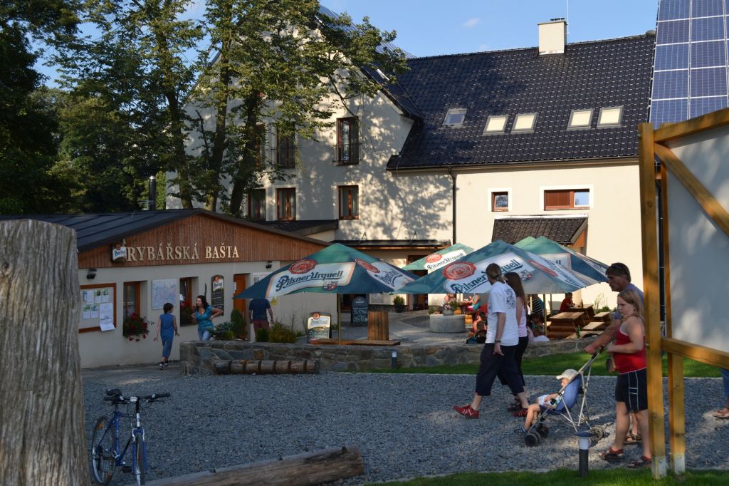 se nachází v přízemí bývalého mlýna. Je zrekonstruována stylově se snahou zachovat původní mlýnskou atmosféru. Nabízí hlavně rybí speciality, na své si však příjdou také milovníci ostatních pokrmů. Za příznivého počasí je hostům k dispozici také klidné posezení na přilehlé terase s výhledem na rybníky, zeleň a řeku.