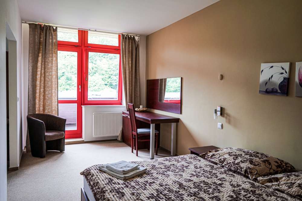 Ubytovací kapacita hotelu je v současné době 106 lůžek. Hotel má k dispozici několik jednolůžkových, dvoulůžkových pokojů, rodinné pokoje, apartmány, luxusní apartmány. Pokoje jsou standardně vybaveny - nábytek, televize, minibar (luxusní apartmány). Lze si vybrat pokoje s balkónem nebo bez balkónu s výhledem na okolní louky, zámek Hradec nad Moravicí nebo venkovní bazén.